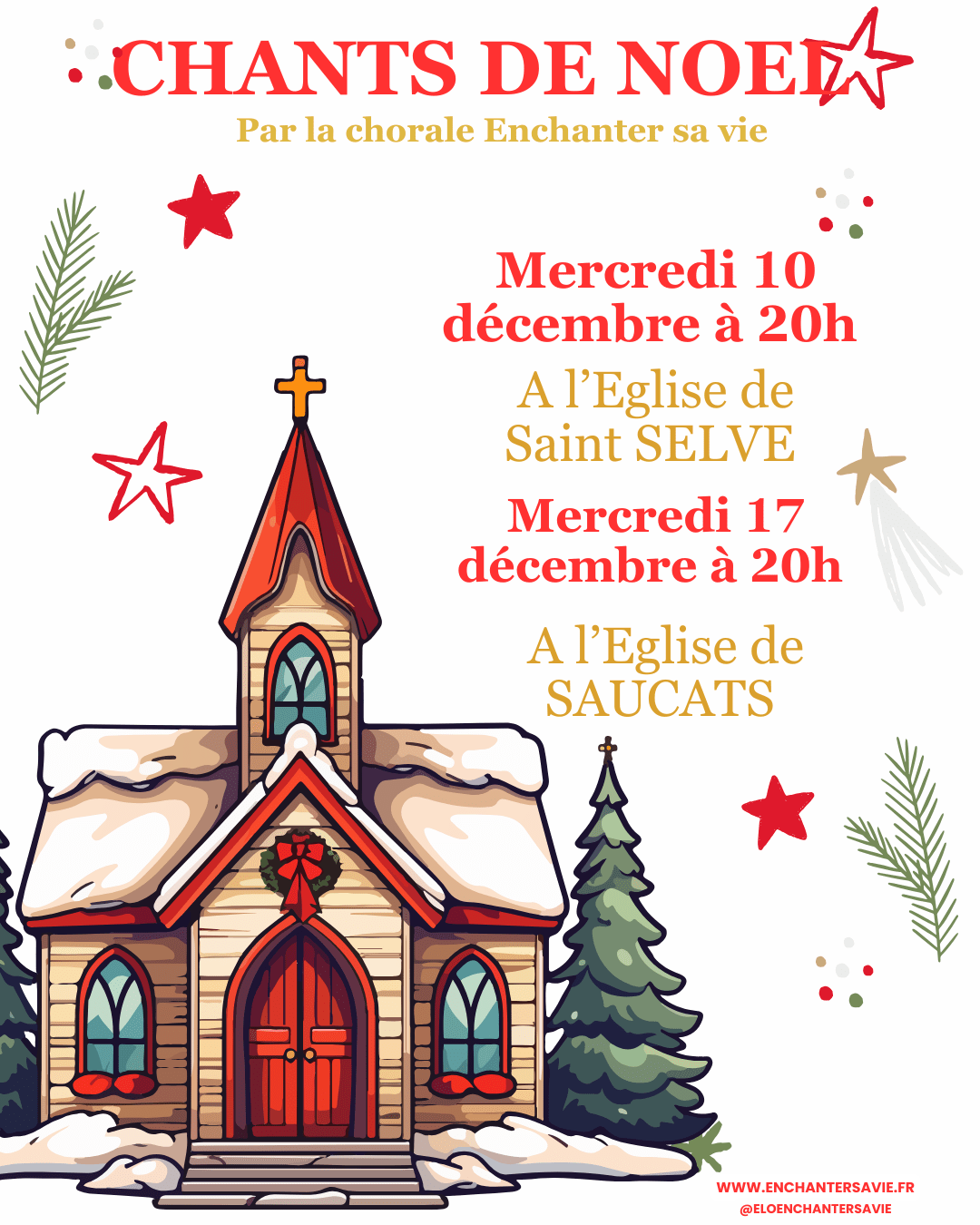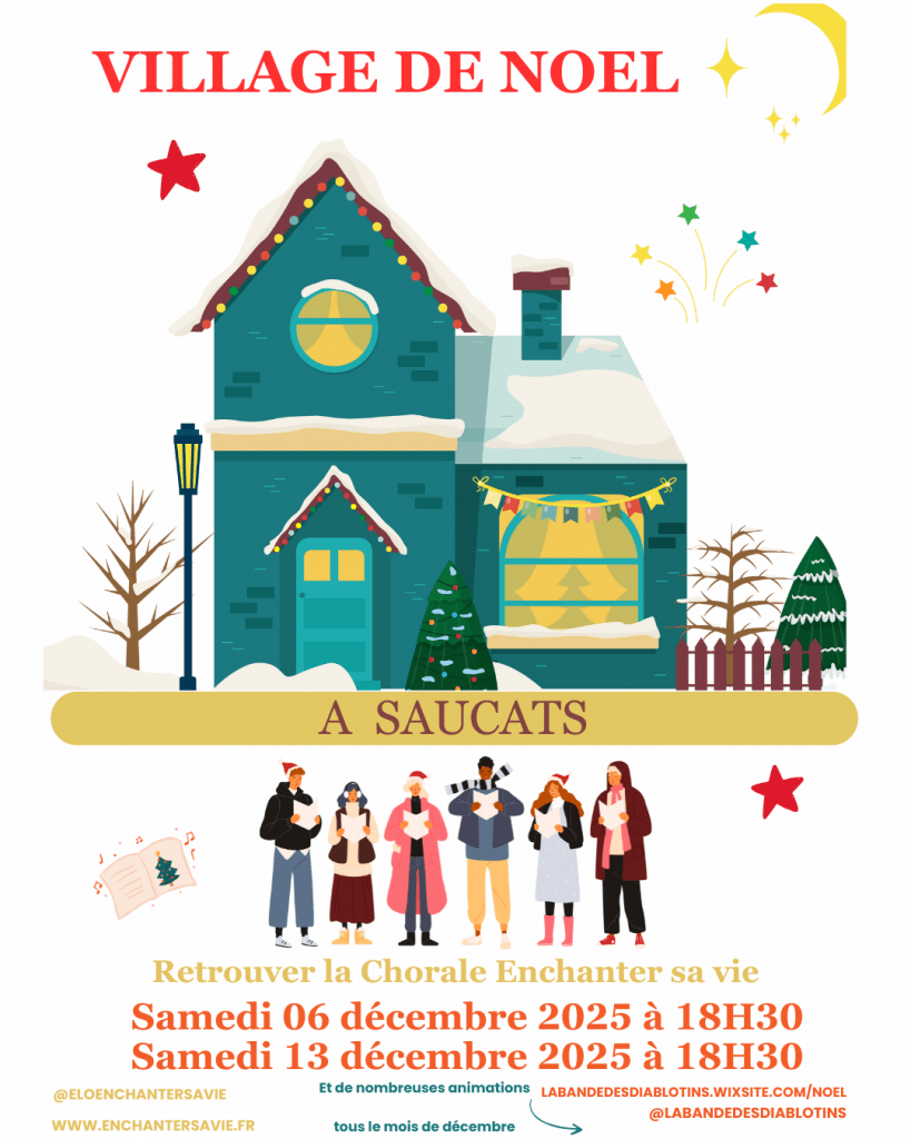 • le samedi 06 décembre 18h30 au village de Noël de Saucats