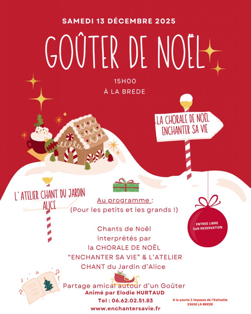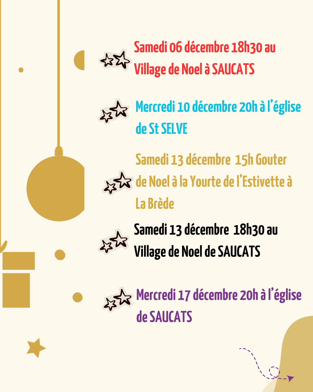 • samedi 13 Décembre gouter de Noël à la YOURTE à La Brède et à 18h30 au village de Noël de Saucats